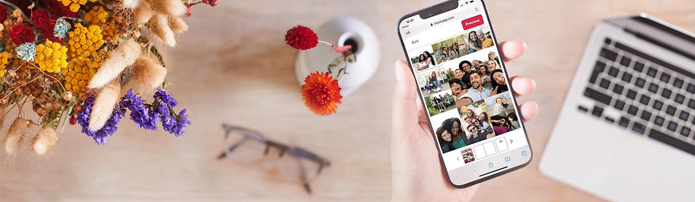 No more endless scrolling through templates to find the perfect one or carefully working out how many photos to add; save time and effort with the Moonpig collage designer. Create a card that’s completely unique in just a few simple steps and have your creative vision come to life! Experiment as much as you like until you love how it looks; upload your special (or embarrassing!) photos, move things around, zoom and crop to your heart’s content. Once you’re happy with the front, add a thoughtful message inside and send your creation straight to your loved one’s door. Easy peasy and oh-so personal.